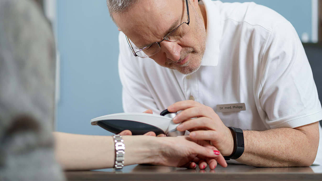 Auch die Computer gestützte Dokumentation und Analyse von Pigmentflecken bieten wir in unserer Praxis als IGEL an. Hierbei verwenden wir das Videodermoskopiesystem DermoGenius ultra der Firma DermaScan.